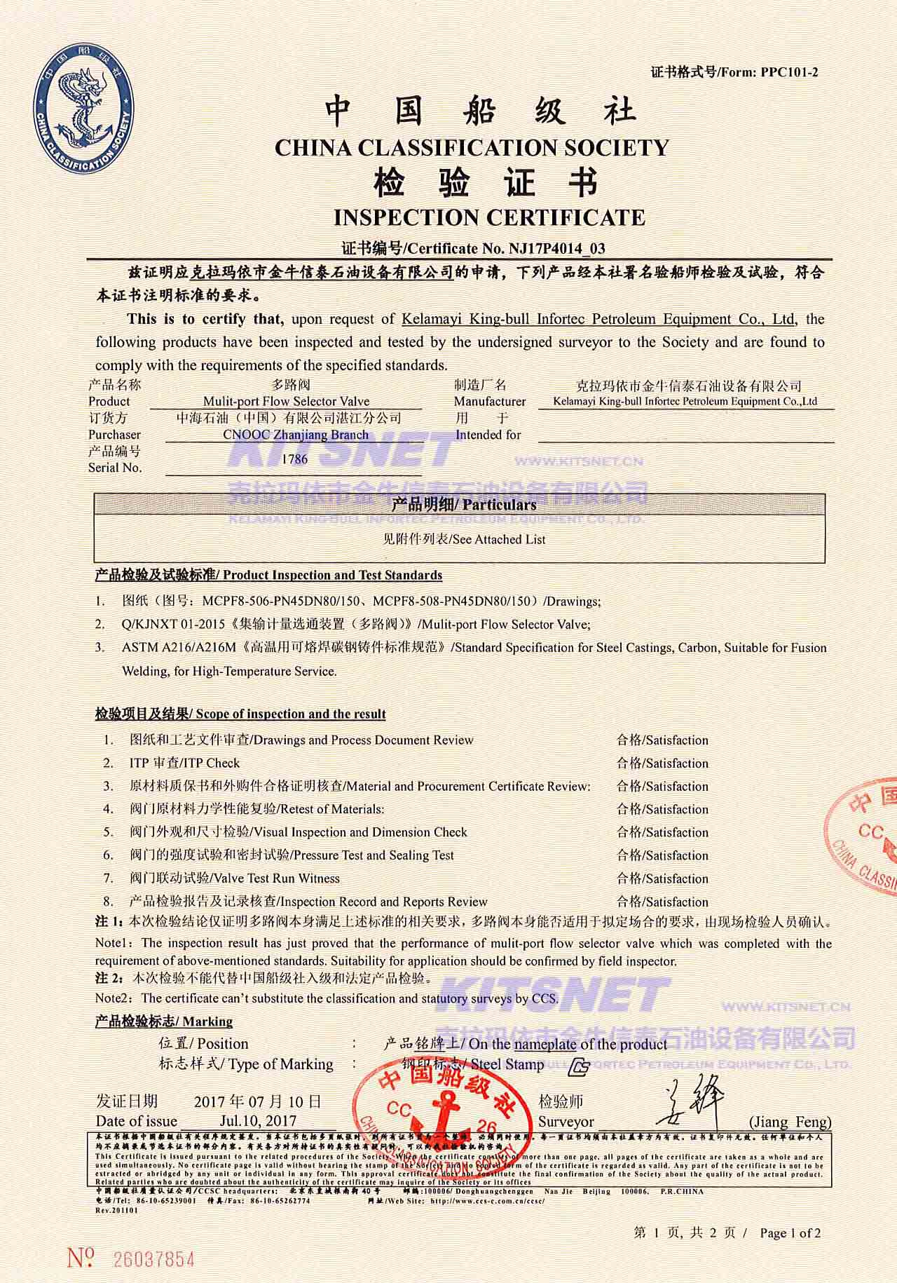 Next: DNV Certificate of MSV